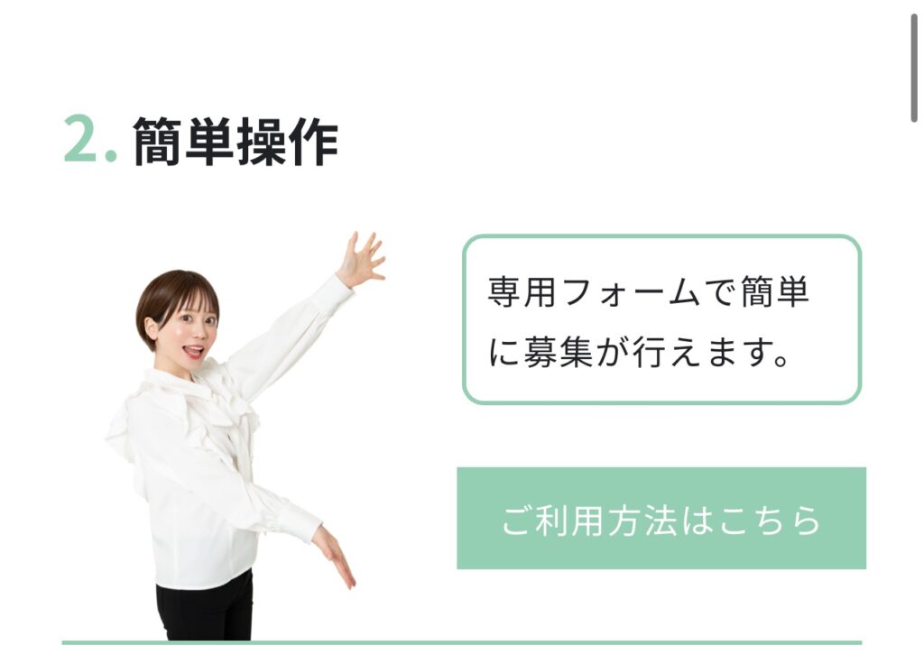 専用フォームで簡単に募集が行えます。→サポート体制充実